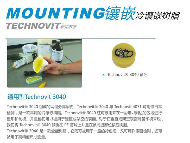 *要在垂直方向或头顶上取模,我们建议将Technovit 3040倒在PE薄膜上,然后将其压在要浇铸的表面上。