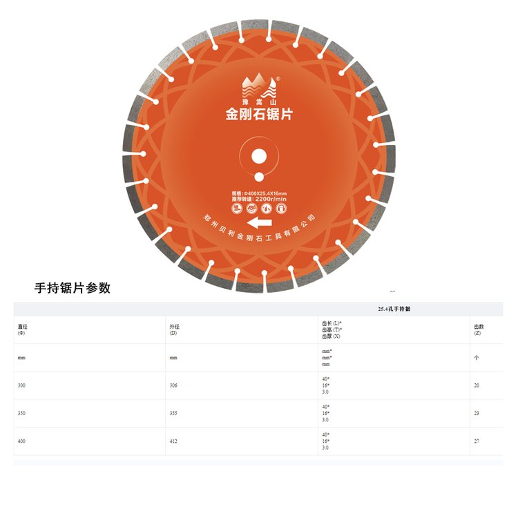 贝利工具豫嵩山手持锯锯片直径300-350-400内孔25.4mm锋利切墙片