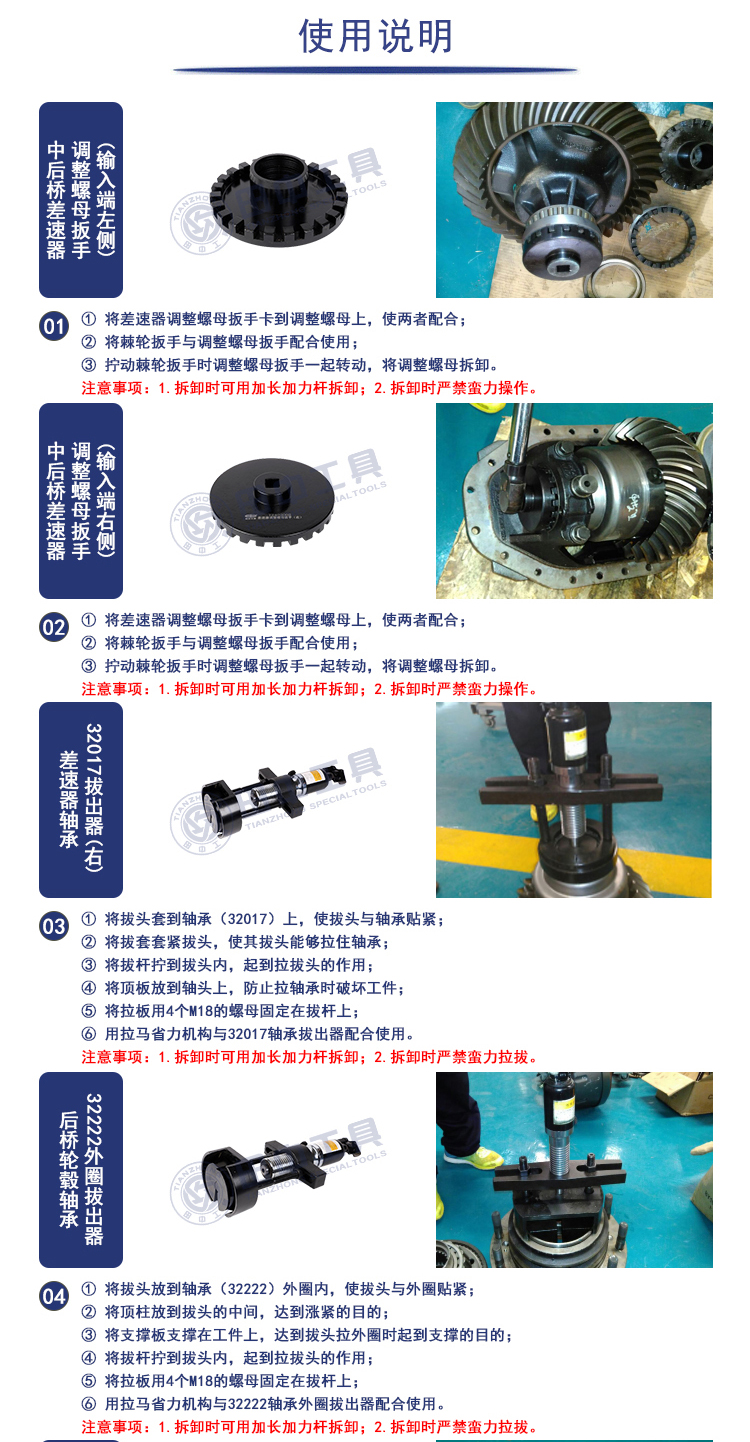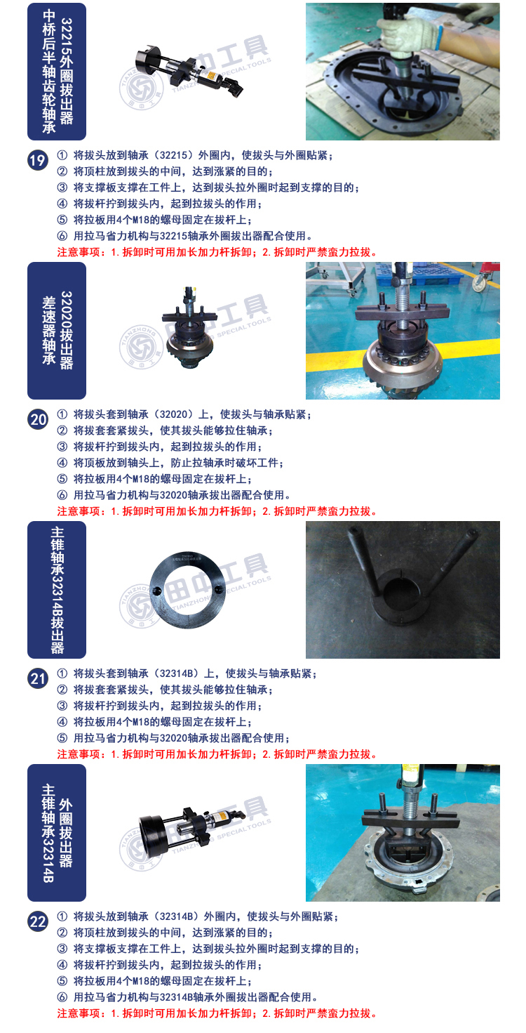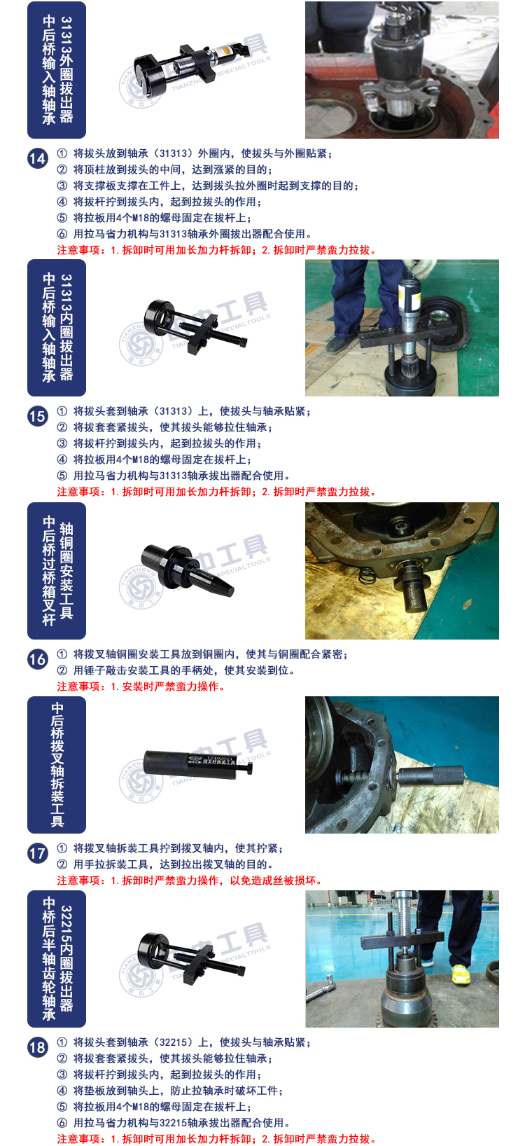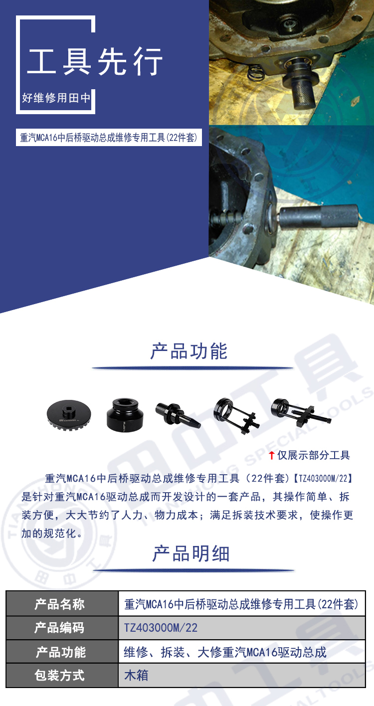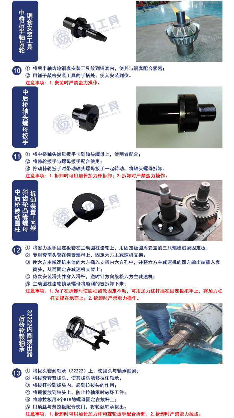 功能用途 | MCA16中后桥驱动总成专用卡车维修工具 | ||