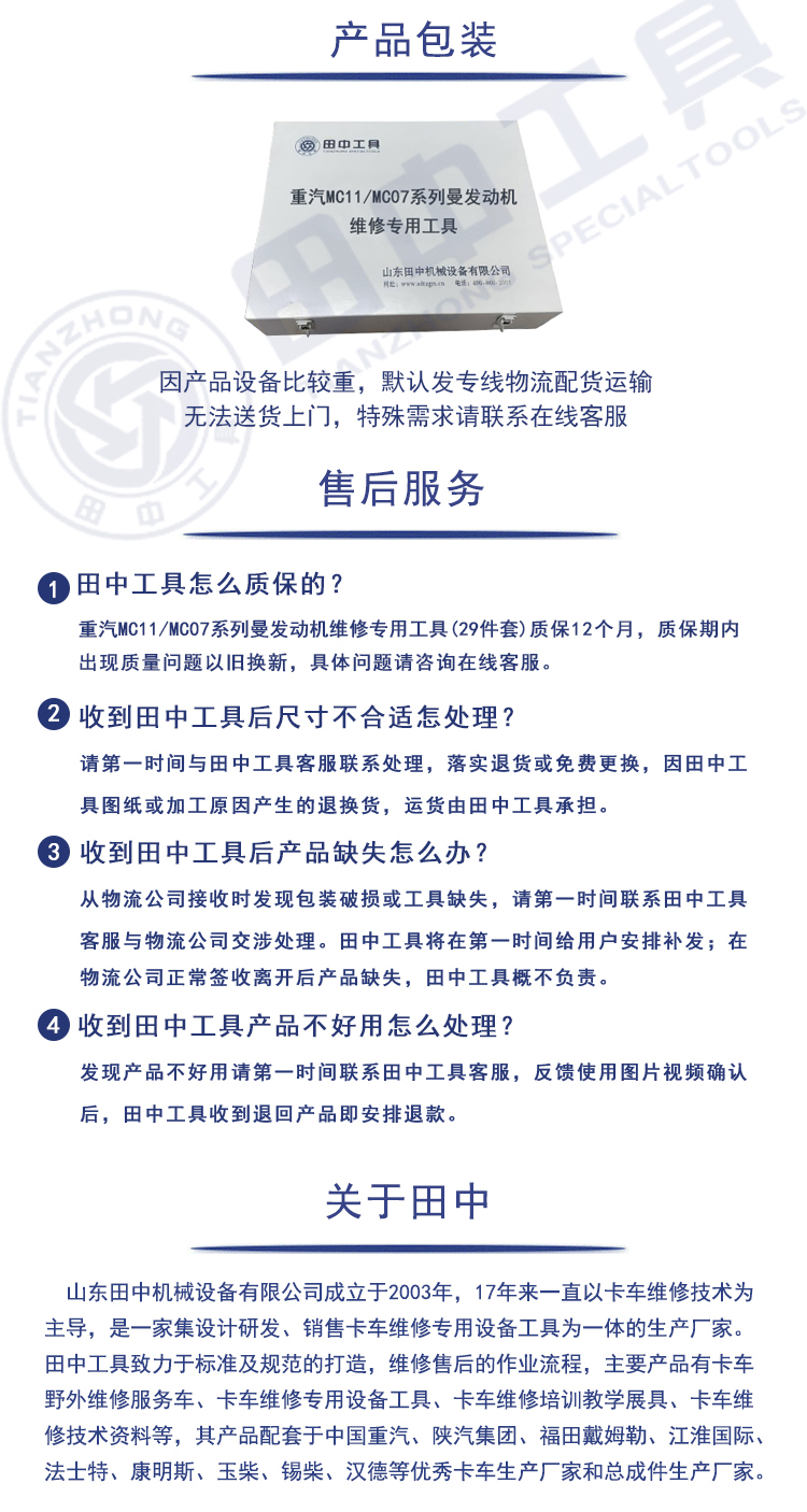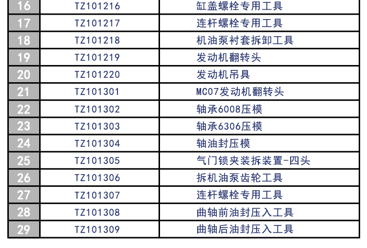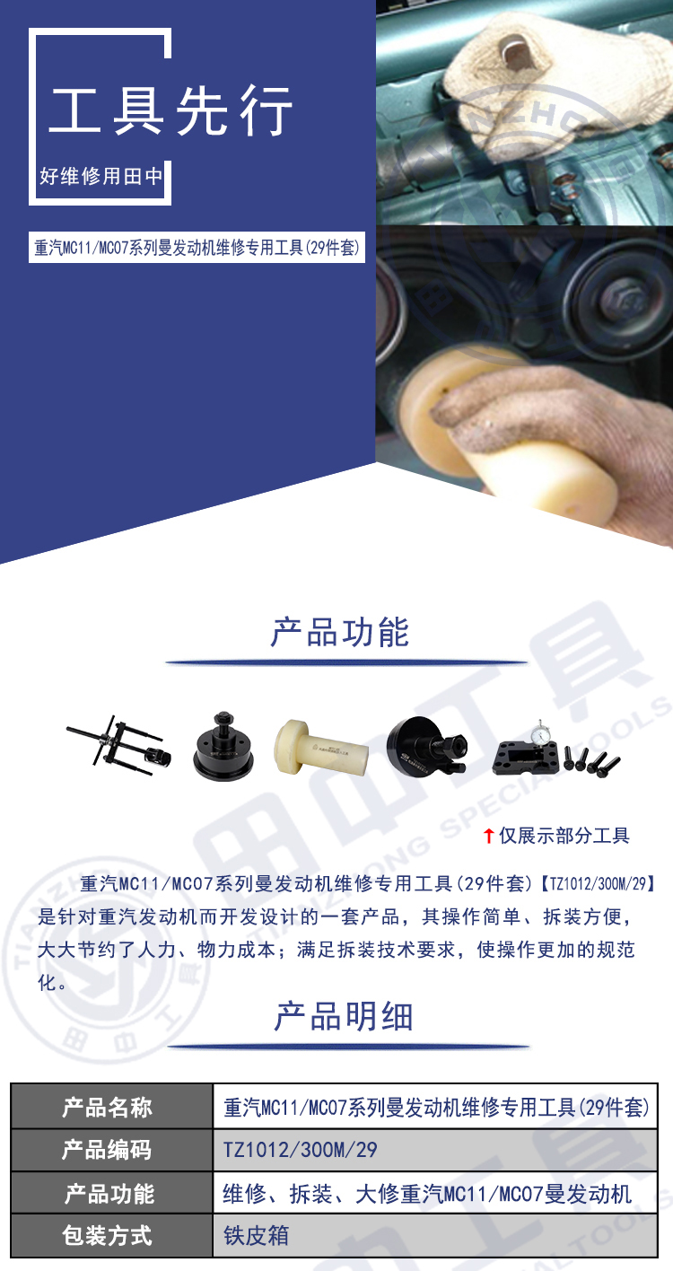 重汽MC07/11系列专用卡车维修工具29件套 田中工具 型号 | TZ1012/300M/29 | ||