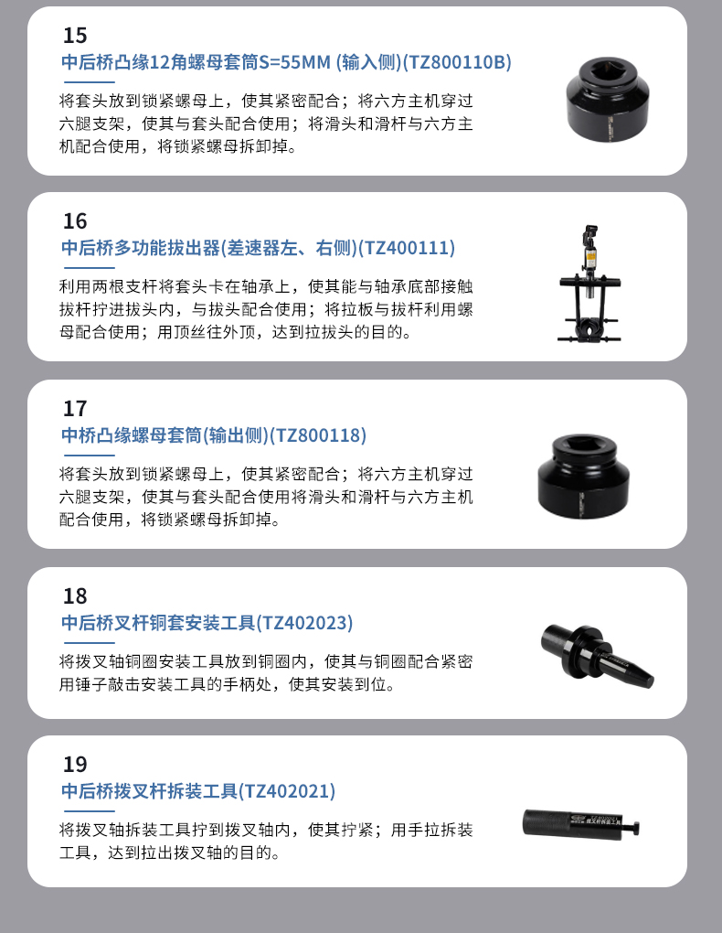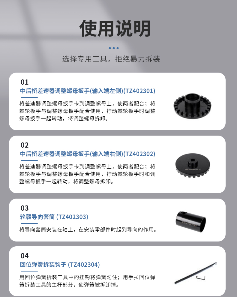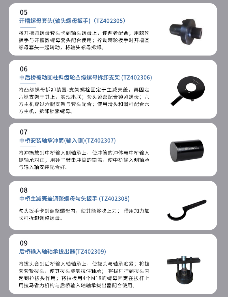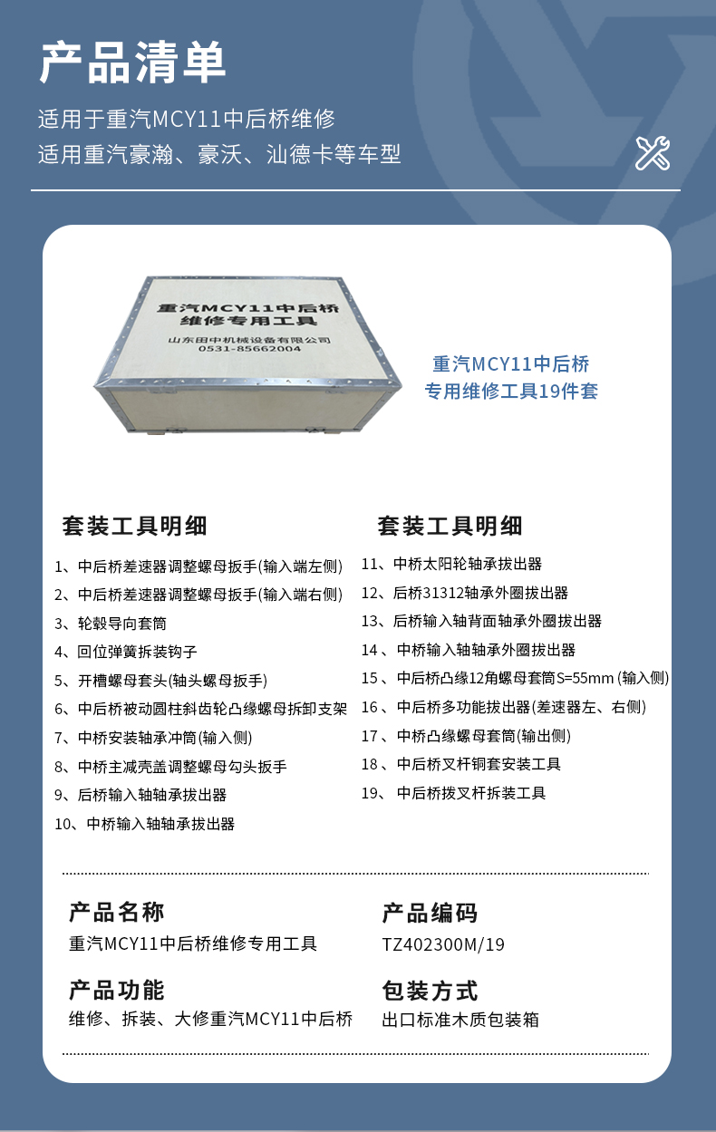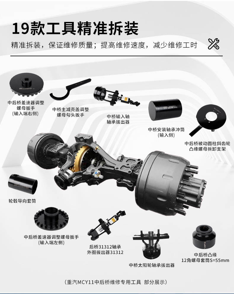 功能用途 | mcY11重汽中后桥维修使用 | ||
