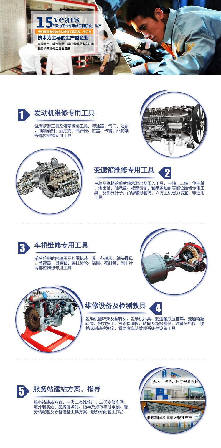发、生产和配套,为客户提供品质卓越的卡车维修工具设备等产品及技术支持,产