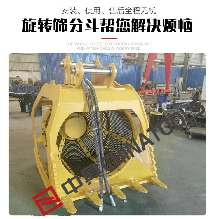 挖掘机旋转筛分斗液压滚筒式土壤筛分网斗河道洗沙配件铲分斗