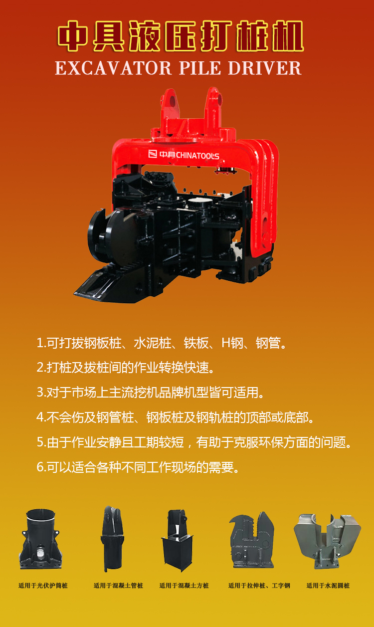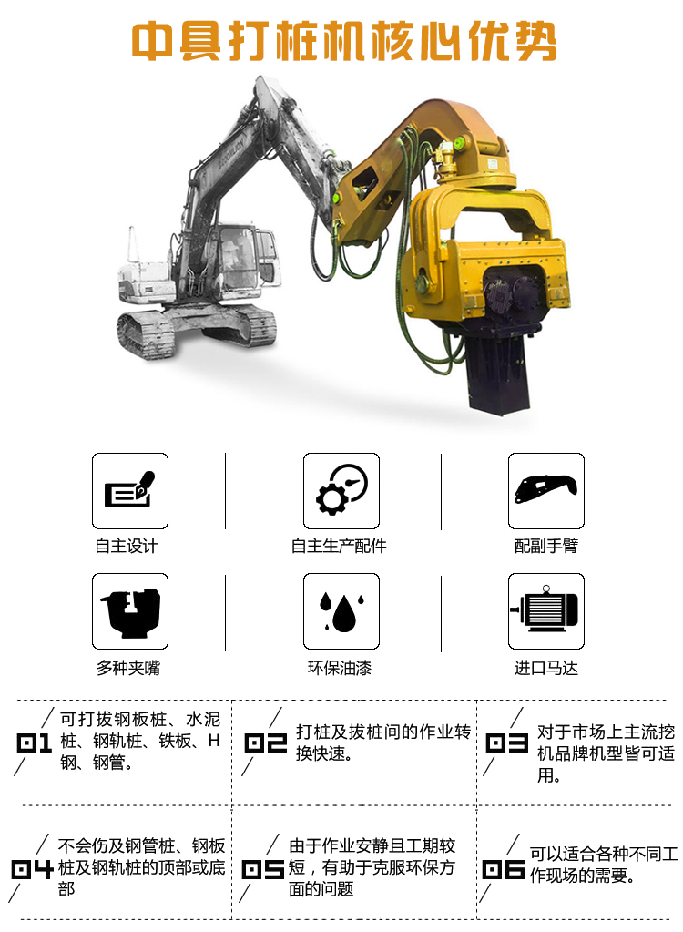 中具光伏打桩机厂家全液压多功能挖机采用大功率动力打桩系统机
