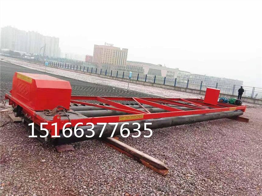 ①将机器运至施工现场,两行走辊平放于模板上(也可先接通电源,启动行走电机。使机器沿事先搭好的斜坡行驶至模板上)