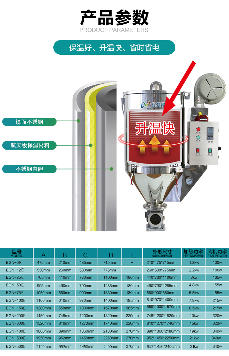 熔喷挤出专用料斗型塑料干燥机热风回收烘料干燥料斗