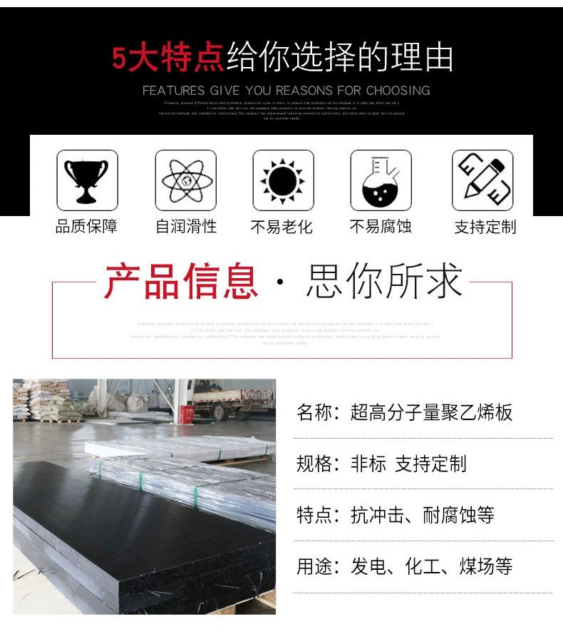 添加二硫化钼玻纤阻燃超高分子量聚乙烯板可按尺寸定制彩色UPE板