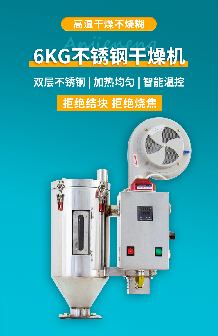 安捷能6kg塑料干燥机不锈钢料斗颗粒烘干机厂家