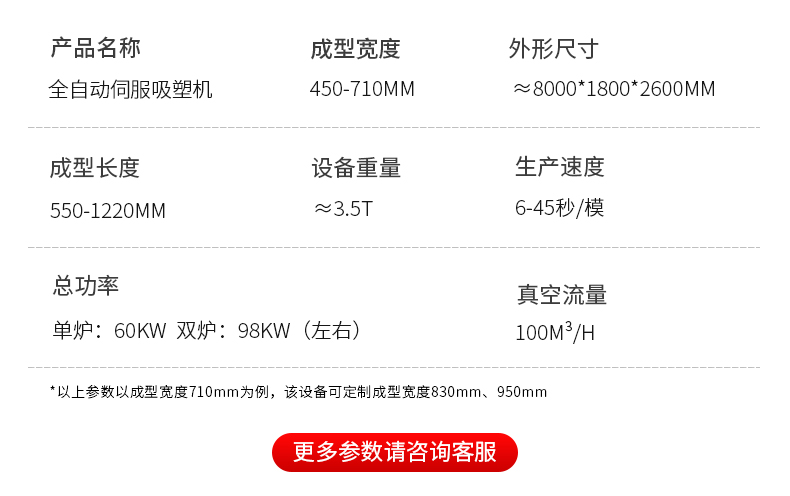 全自动伺服吸塑机塑料包装/托盘/泡壳吸塑生产设备真空吸塑成型机 型号 | ASF-710 | ||