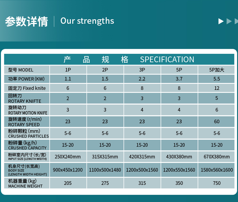 用途范围 | 塑料破碎 | ||