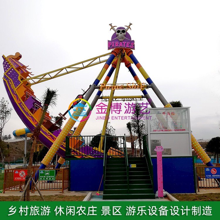 24座海盗船游乐设备是一种绕水平轴往复摆动的大型游乐设备项目,24座海盗船游乐设备是因为其外形仿古代海盗船而得名。海盗船启动后从缓慢摆动慢慢的急速摆动,乘客乘坐于海盗船之上,随着由缓至急的往复摆动,犹如莅临惊涛骇浪的大海之中,时而冲上浪峰,时而跌入谷底,惊险刺激,挑战乘客心理承受能力的极限。