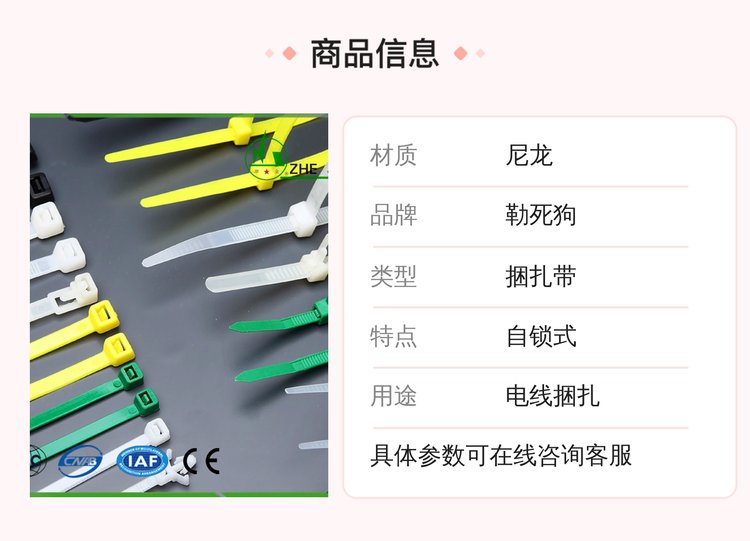 尼龙扎带自锁式强力固定电线电缆线束线带耐磨耐用