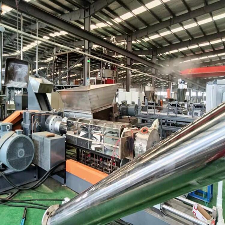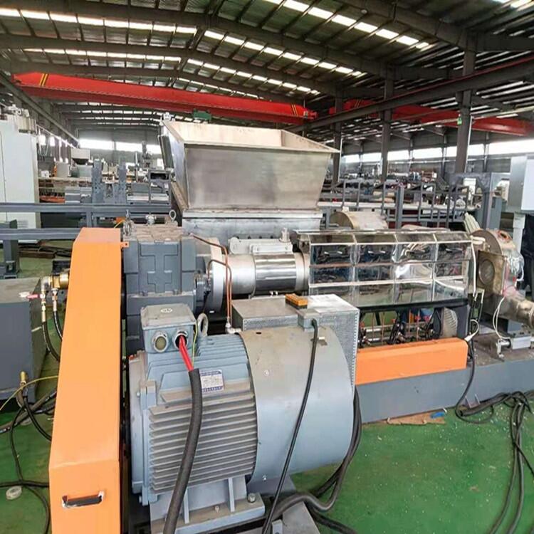 110升密炼机/JDL_180单螺杆造粒机组加工物料:PE+85%氢氧化铝产能:记得到1000公斤每小时,取决客户的配方工艺生产条件自动翻斗提升机:1、上料电机功率:2.2kw;提升料斗为不锈钢材质,需满足300kg/锅,确保安全。2、将捏炼机捏炼后的团状物料输送至锥双喂料机内。提升机安装两个控制系统;一个控制系统安装密炼机控制面板上(三)锥双强制喂料机:一台1)电机功率:11kw,采用三晶,变频调速器,喂料螺杆:锥形双螺杆强制下料,主轴使用鎳铬钼合金钢制经调质处理,氮化镀铬处理,表面光洁度高。螺旋叶片使用铸不锈钢,表面渡硬铬处理。2)喂料体:使用不锈钢板焊接制成,内表面抛光、镀硬铬处理,光洁耐磨。喂料斗:使用不锈钢板焊接制成,内表面抛光、镀硬铬处理,光洁耐磨;采用锁扣式安装防护罩,要求便于更换和维修保养。3) 锥双喂料机与单螺杆连接为哈佛式结构;(四)JDL-180挤出机1、减速箱:采用ZLYJ系列专业为单螺杆橡塑挤出机配套设计的高精度硬齿面带推力座的齿轮传动装置,设计采用JB/T8853-2001《圆柱齿轮减速机》规定的各项技术规范,输出轴采用高强度42CrMo,其他齿轮和轴类零件采用高强度20CrMnTi材料;齿轮经渗碳、淬火、磨齿工艺加工,齿轮精度高、硬度高;齿轮精度为GB10095-88,6级,齿面硬度在HRC-54~62,在空心输出轴前端配置推力轴承,承受螺杆工作时的轴向二. 技术配置(一)110升密炼机主要规范 : A.混合槽有效容积 : 110L B. 叶轴 : 二叶片式。耐磨环采用特殊合金材料。 C. 叶轴的转速 : 前轴 : 48 r.p.m 后轴 : 37r.p.mD. 电力装置 : 1. 主要马达 : AC 160KW, 6P, 380V,50HZ 2. 翻转马达 : AC 5.5KW, 4P, 380V, 50HZ E. 润滑方式 2. 减速机箱采用油浴自溅式润滑。 F. 卸料方式 : 翻转式卸料。 G.密封方式 : 机械式迫紧密封。 H. 温度控制 : 采用强制水冷却,高于设定温度自动冷却。 I. 马达方向 : 当操作者面对机器卸料面站立时,马达在机器右侧。马达和减速机呈并排平行放置 J. 主机传动系统 :通过皮带轮将动力间接传动至减速齿轮箱,该齿轮箱与 前叶轴由齿轮联轴器连结,前叶轴经由咬合齿轮传动后叶轴 K. 翻机传动系统: 通过联轴器直接将动力传至蜗杆,由蜗杆带动蜗轮。 L. 主电机保护 : 当主电机电流超过电流表设定电流时,加压盖自动上升, 电流恢复正常时加压盖自动下降。 1. 叶轴 :由优质钢材精密加工耐磨处理制成,工作面经镀铬处理 2. 机架 : 材质 钢板焊接后热处理,经精密铣、镗加工制成。3. 底座 : 国标槽钢、钢板焊接经加工制成。 4.轴承座及轴承 : 轴承座采用铸钢经精密加工制成,轴承采用TWB品牌。 5. 咬合齿轮 : 由FCD600制成,直齿型。 6. 减速箱 : 减速机硬齿面. (油品需客户自行采购)设备特点:这套设备是环保型;整设备不需要接外循环水系统;自带循环冷统是我公司专利产品,(发明专利号:CN201911312134.6)好处:整套0水排放;无水污染;环保好过2.齿轮箱冷却采用:采用环保冷却系统(环保型:发明专利号:CN201911312134.6)不需要接外循环水冷却,不用徘外水;采用闭环循环系统,不用担心长时间使用水冷却会产生水垢把冷却器堵住,导致齿轮箱损坏3.主机水箱冷却系统采用:采用环保冷却系统(环保型发明专利号:CN201911312134.6)不需要接外循环水冷却,不用徘外水;采用闭环循环系统 4. 节能:普通筒体筒体冷却;例如:第5区温度超高;这是电子阀导通;第5区冷却回水就会影响第六区和第四区的温度下降;就会导致第四六区加温;这种情况会一直循环出现;导致电费浪费;我们现在采用环保型就彻底解决这个问题;我们设备比同类设备节能:10-15%电费5.减少投资款:3米*3米*2.5米冷却水池;60立方冷却水塔及4KW高压水泵2台及管道,10天施工费用:能减少固定投资大概:10-12万元左右