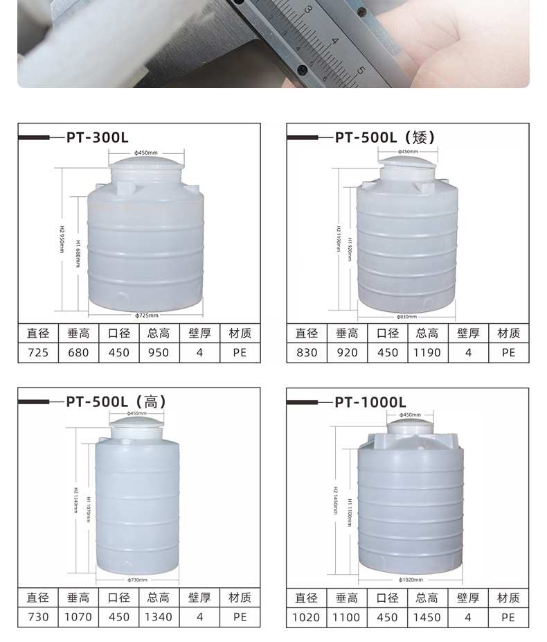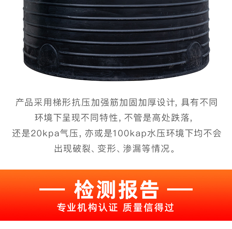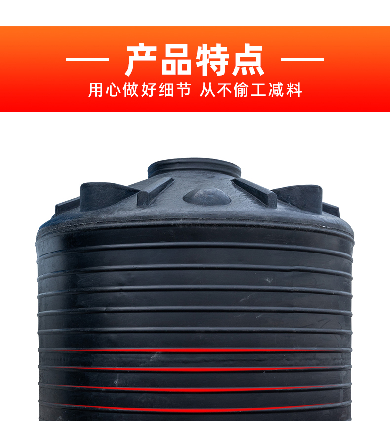 又名塑料水箱,塑胶水箱,塑料水塔,聚乙烯储罐等,采用进口食品级线性低密度聚乙烯(LLDPE)滚塑一次成型。