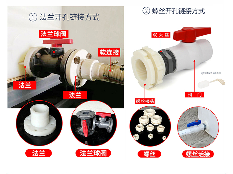 顶部底部开口,开口链接法兰,法兰球阀,螺丝进口,阀门等链接配件,还有龙门架,护墙套和护栏爬梯等。无需到处采购,厂家一站配齐。