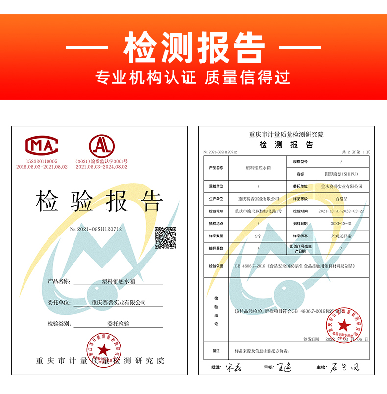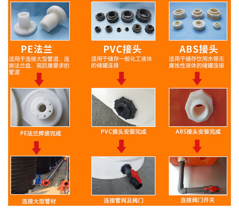 我们的产品还有三种等级,标准型常用作蓄水箱,作用于低腐蚀性的液体。A类水箱可装一般腐蚀性和酸碱性的液体。特级水箱,可装高浓度酸碱盐液体(硝酸除外)。产品展示一般为标准型,购买前请联系客服需要装哪些液体。