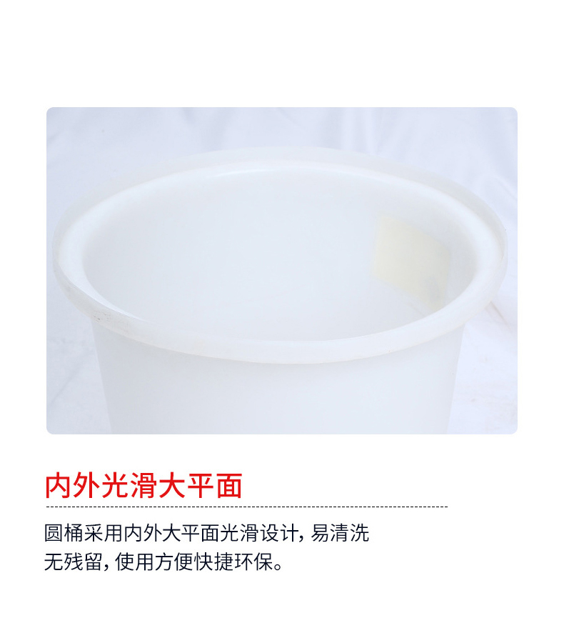 圆桶有着极好的耐腐蚀性,耐酸碱性,作为食品腌制发酵是很好的容器。耐撞耐磨。桶身表面内部光滑,无死角,再使用之前和之后都非常容易清洗。本产品还可以根据客户需求安装排水口,在使用或者清洗后可以水排干。