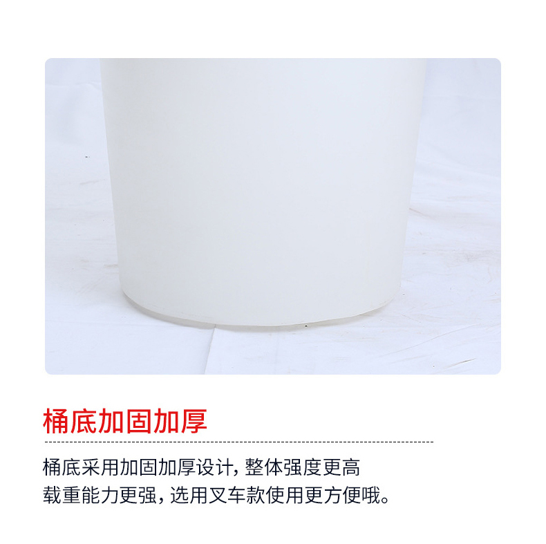 采用食品级PE原料,滚塑一体成型,圆桶整体圆润,无缝无焊接,圆桶耐磨耐摔,久用不烂,一般条件下可用十几年。