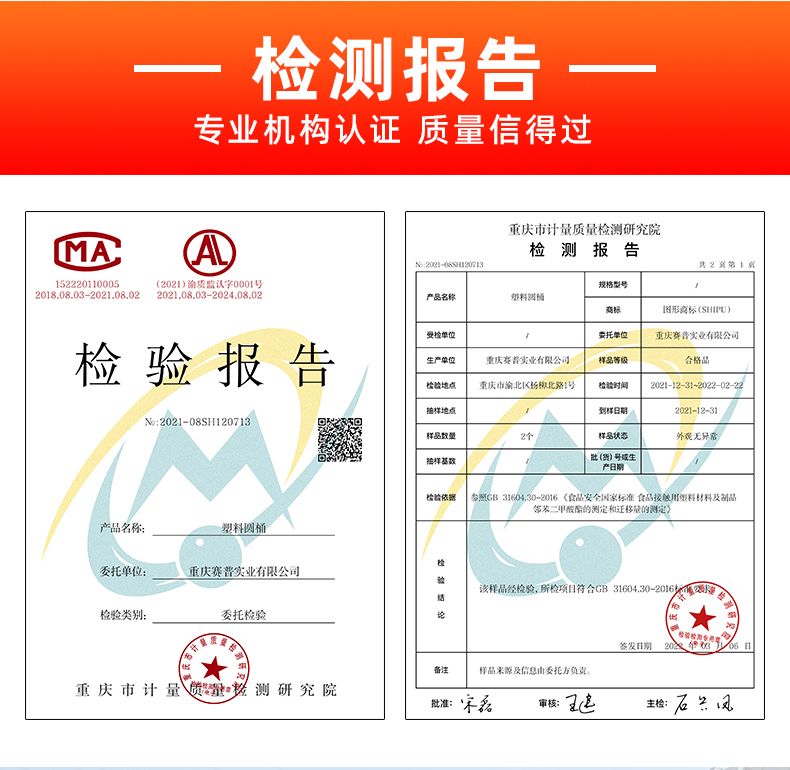 塑料圆桶使用了合格的原料制成,在对产品的质量上有严格的要求,可多次反复使用,不易损坏,通过了产品质量检测,有着产品检测报告,可放心使用。