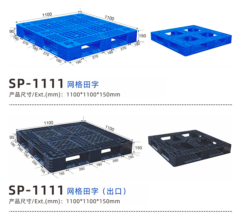 托盘有着合理的材料比例,使我们的托盘有适合的重量,能让使用者能轻易的搬运移动,托盘也有课堆叠设计,在使用完托盘之后可以堆叠存放。托盘还有防腐防潮功能,对托盘的存放环境没有要求,极大的便利了对本产品的储存使用。
