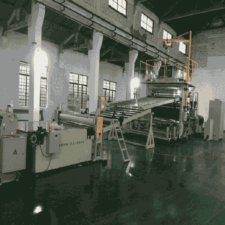 5)佳德汽车内饰片材挤出机设备_汽车脚垫片材挤出机设备冷却水管加装安全防护罩,采用铰链和气弹簧方式,便于维修和保养。