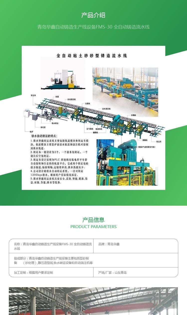 华鑫铸机自动铸造生产线设备FMS-30粘土砂砂型全自动铸造流水线