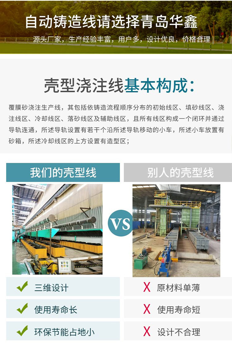 华鑫铸机定制自动覆膜砂树脂砂铸造壳型浇注生产线