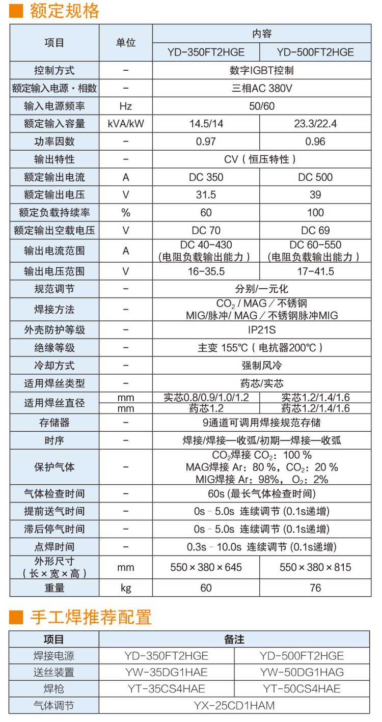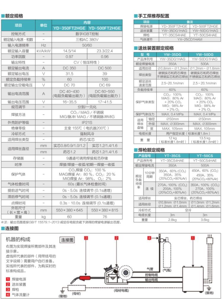松下全数字控制单脉冲MIG/MAG气体保护焊机YD-350FT3不锈钢焊接机 控制方式 | 数字 IGBT 控制 | ||