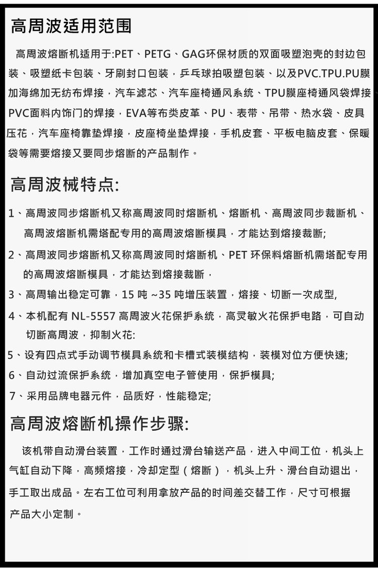包装材料 | PET/PETG/GAG/EVA/TPU高周波焊接自动熔断机,汽车加热坐垫,汽车座椅通风袋焊接熔断机 | ||