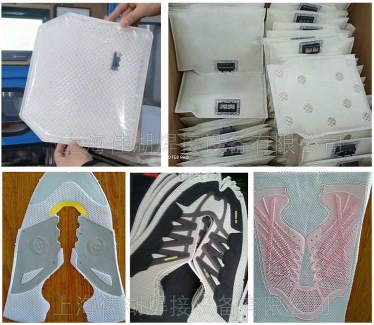 机械用途 | PVC/PETG/APET/GAG/TPU/PU等腰托气囊焊接,鞋垫压花,鞋材鞋面熔接切边,医疗袋熔接切断,吸塑包装等。 | ||