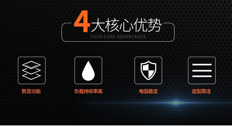、采用MOSFET场效应管逆变技术,逆变频率可达100KHz以上,技术成熟、性能稳定。