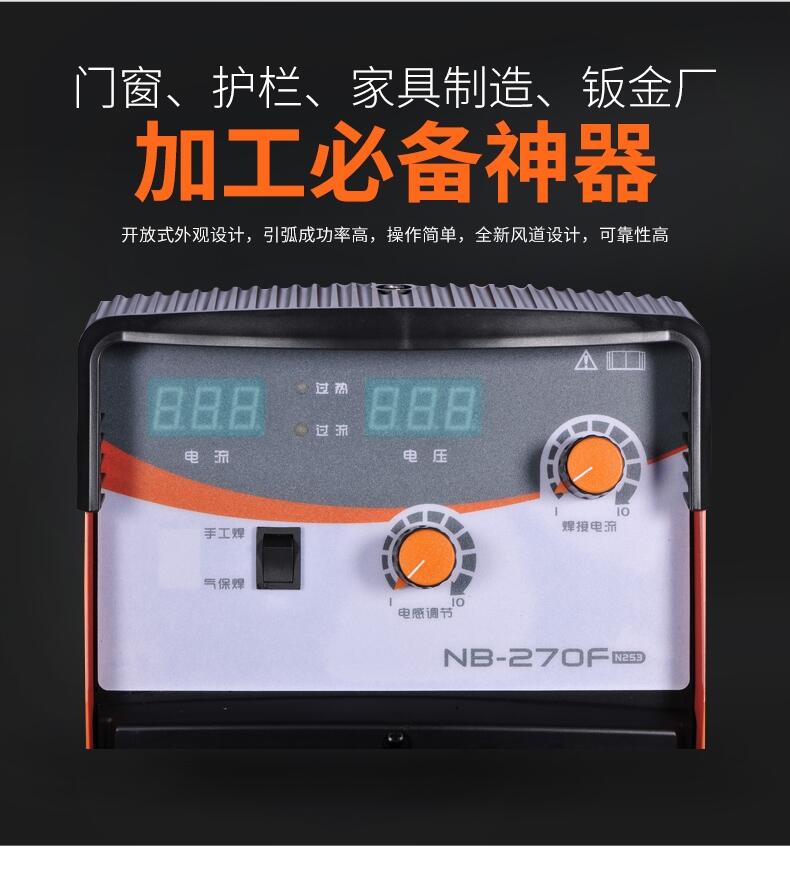 5、手焊/气保焊两用,手弧焊预置电流,气体保护焊预置电压,方便操作。