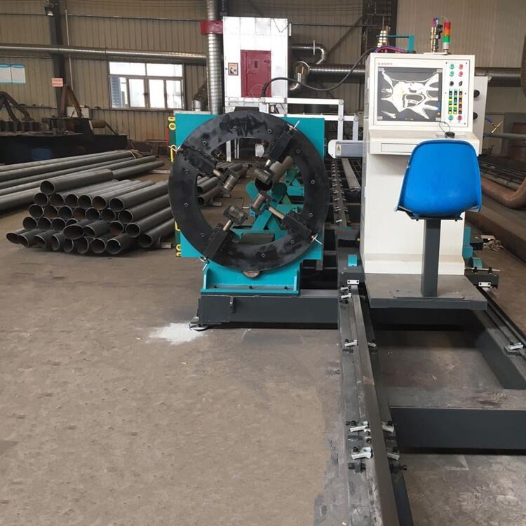 数控管道切割机能十分方便地切割此类工件,并且操作工人不须编程、只需输入相互配合的管子的半径、相交角度等参数,机器就能自动切割出管子的相贯线、相贯孔、以及焊接坡口,不再需要人工打磨。