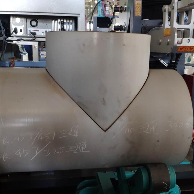 自动生成带坡口的相贯线切割文件,切割带坡口类型从简单主管截断、管上任意开槽、三通孔、偏心孔、任意图形投影,提供丰富坡口切割焊接工艺和经验,提供坡口主视图和侧视图,显示三维立体图和二维切割图。专门用于输送管道和热交换器中各种管子坡口数控切割,包括主管、支管、任意角度相交相贯线坡口切割、钢管上开各种角度的槽、孔、各种角度的截断,以及在管上切割任意图形,管材金属切割设备为管子相贯线坡口提供标准的坡口切割程序,满足单向坡口和全坡口数控切割需要。)