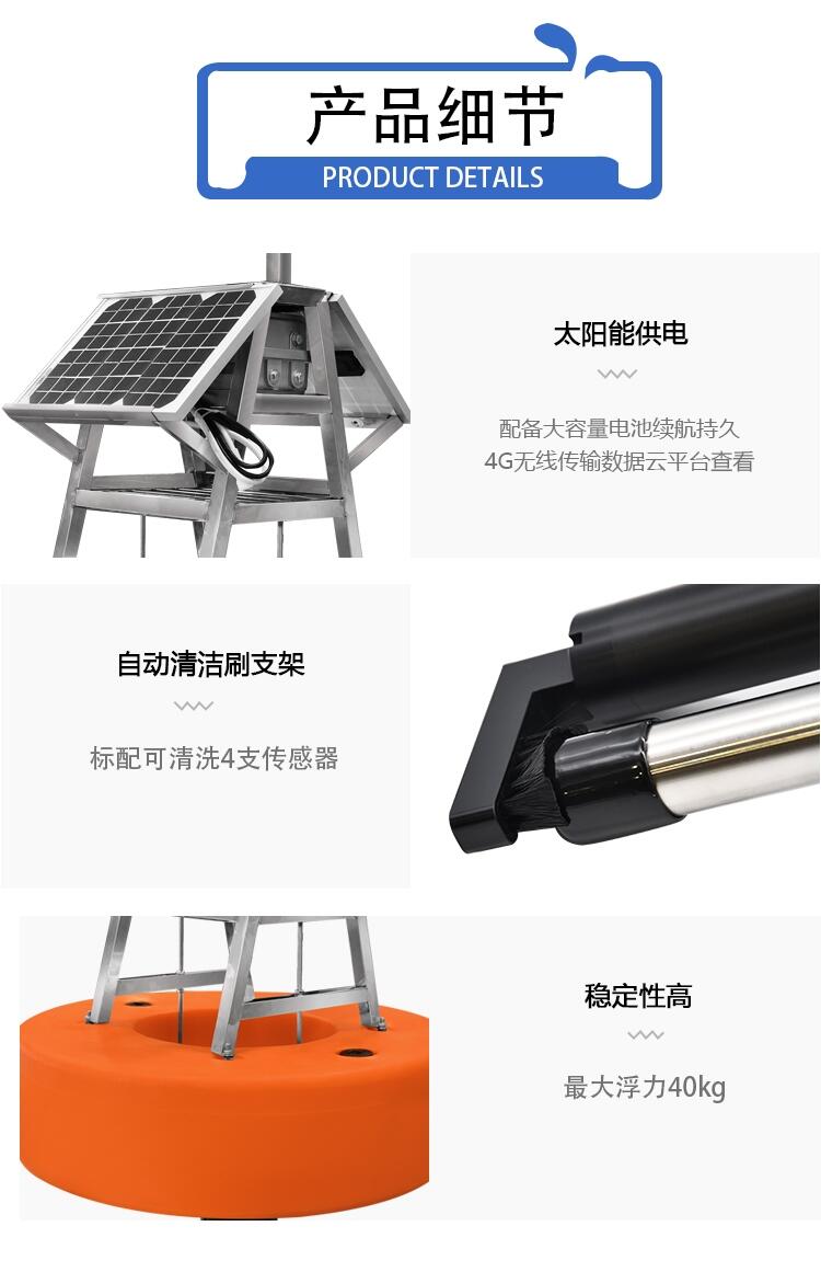 系统内部采用先进的材料技术、太阳能供电技术、传感器在线监测技术、数据采集和云平台监控技术,结合丰富的野外运行和维护经验而制造的监测系统和现代化的水体监测手段。该浮标监测系统可全天候、连续、定点地观测水质、气象等内容,并实时将数据传输到中心站。