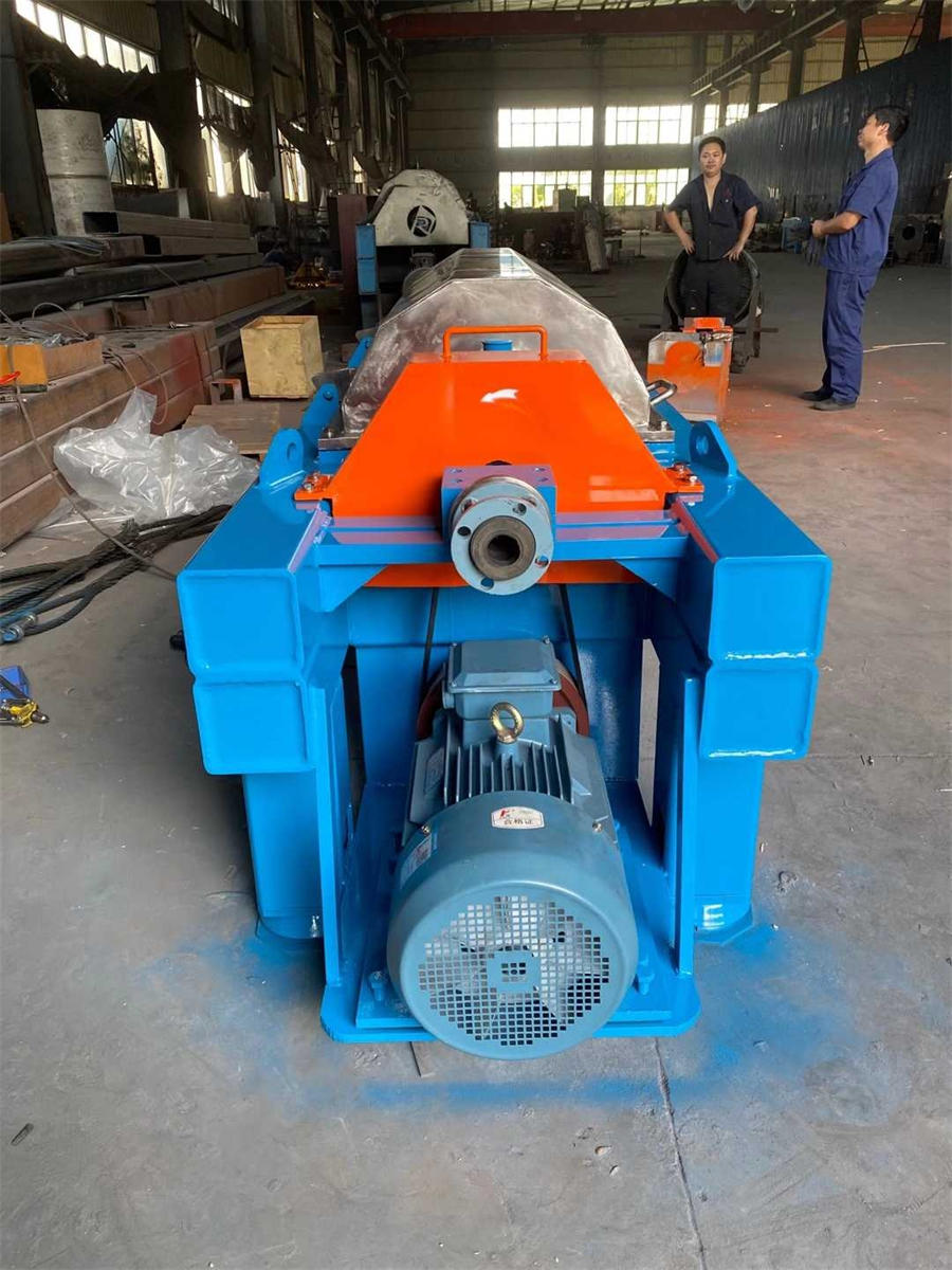 三相卧式螺旋卸料沉降离心机工作原理:离心机由两个转子组成,一个叫转鼓,另一个转子是螺旋卸料器(简称螺旋)。转鼓高速旋转时,转鼓内浆料随转鼓一同旋转,并受离心力作用,此离心力比重力大许多倍,这样固体颗粒就会从液体中分离出来,从离心机转鼓轴心,沉降到转鼓内壁上,位于转鼓内的螺旋卸料器以低于转鼓的转速转动并将沉积的固体颗粒推到出渣口,外转鼓与螺旋卸料器的差转速(影响推渣速度)取决于差速器的传动比及其转速。而重轻两相液体有离心力分成两层。。