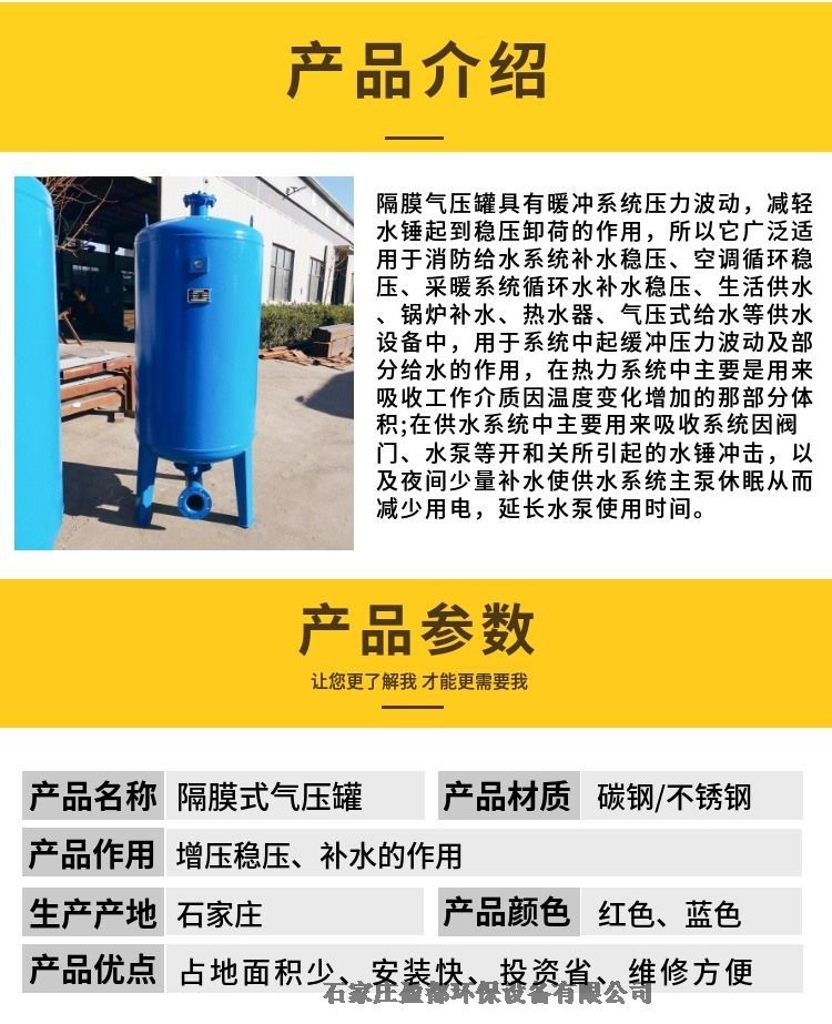 太阳能压力膨胀罐 储水压力罐南阳 卧式消防气压罐