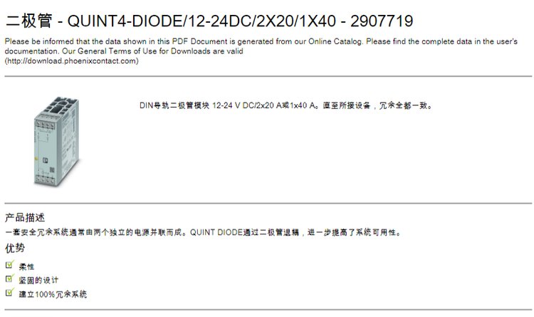QUINT4-DIODE/12-24DC/2X20/1X40菲尼克斯电源德国进口 008 品牌 | 菲尼克斯 | ||