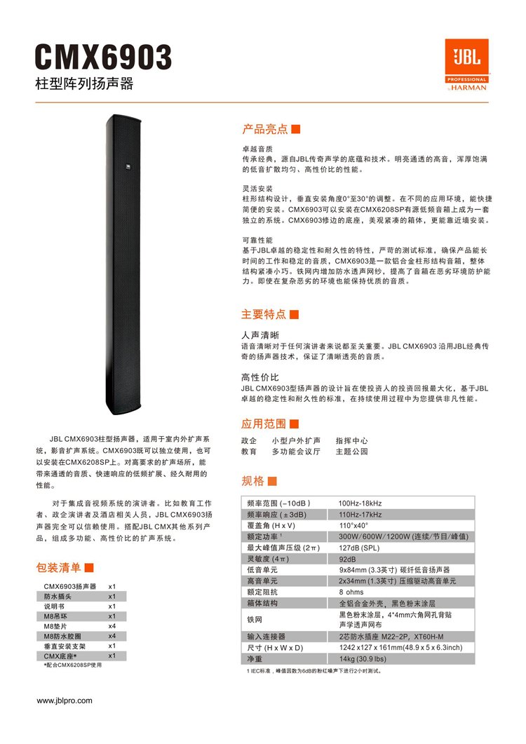 这款扬声器高 1242 毫米,是用于大屏幕演示的理想高度,屏幕两侧安装了一对 CMX6903 扬声器作为立体声扬声器