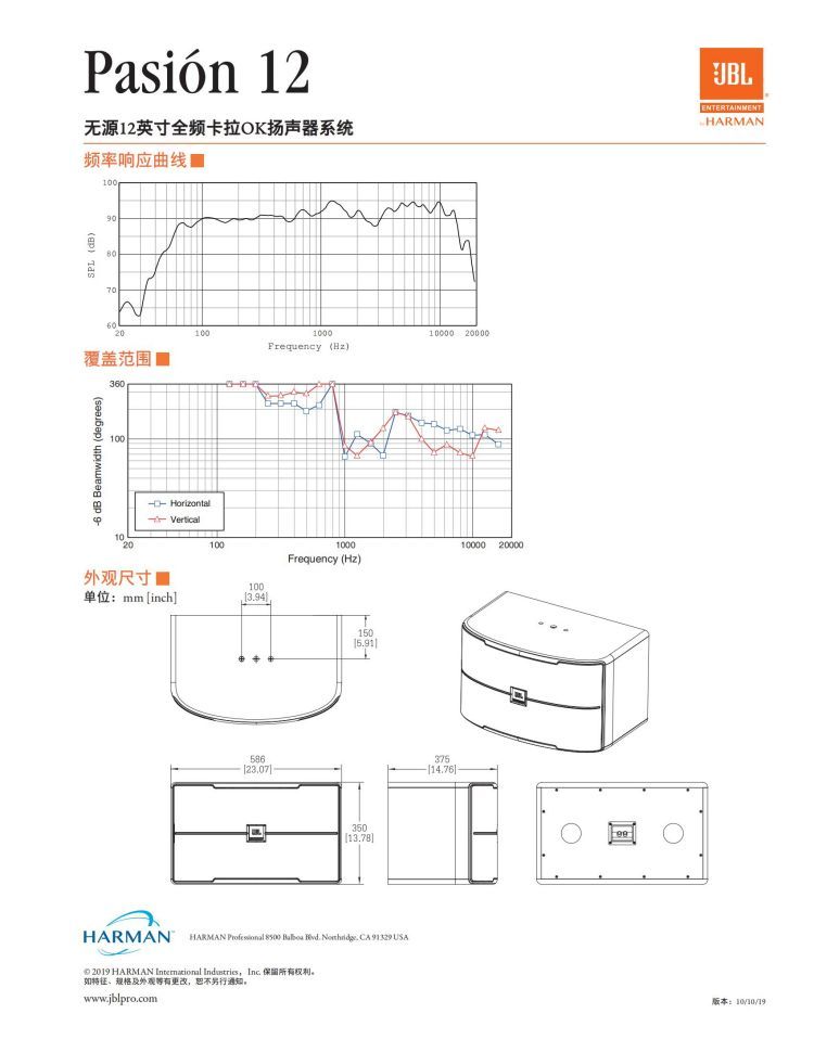 JBLPasion12\/12SP卡包音箱12寸KTV音响有源低音炮卡拉OK专业娱乐