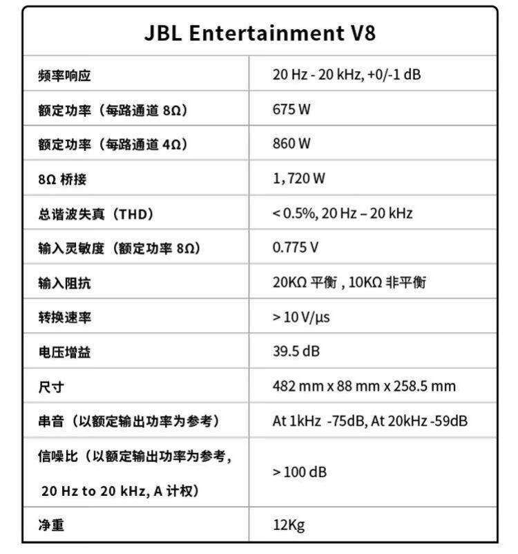 JBLV4V6V8V10双通道会议演出舞台家庭KTV纯后级功率放大器功放