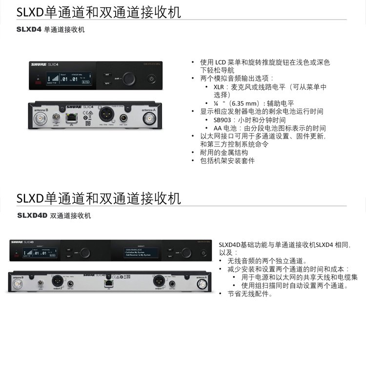 SLXD4单通接收机,SLXD2/BETA58A 超心形动圈手持式发射器
