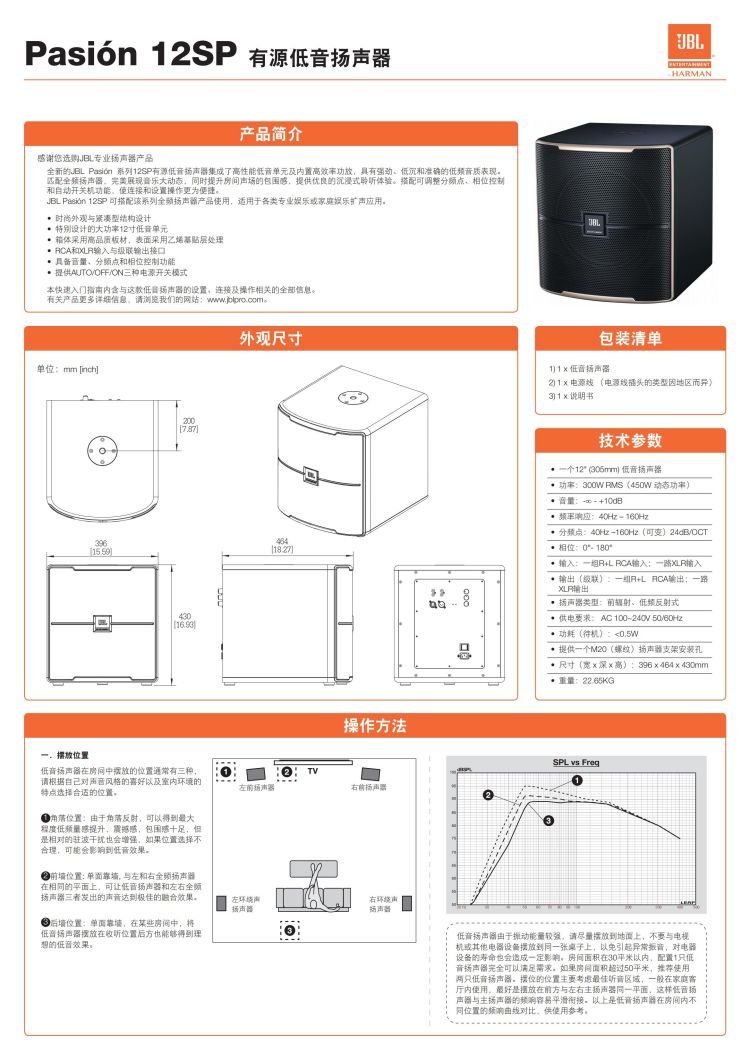 JBL Pasion12/12SP 卡包音箱12寸KTV音响 有源低音炮 卡拉OK 专业娱乐 品牌 | JBL | ||