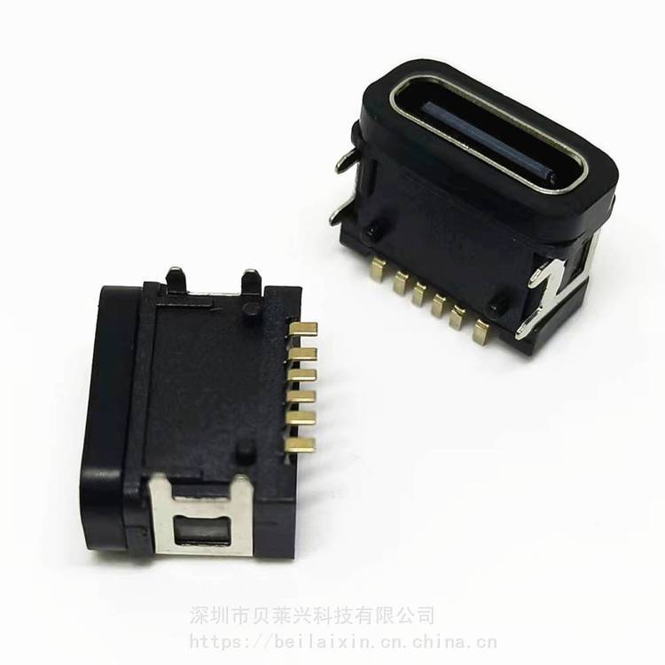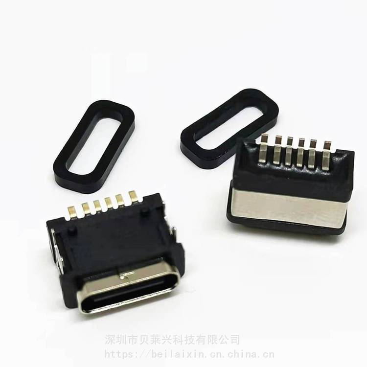 TYPE-C6PIN板上防水母座 90度插板 四脚/两脚 有柱 IPX7 配胶圈 品牌 | BLX | ||