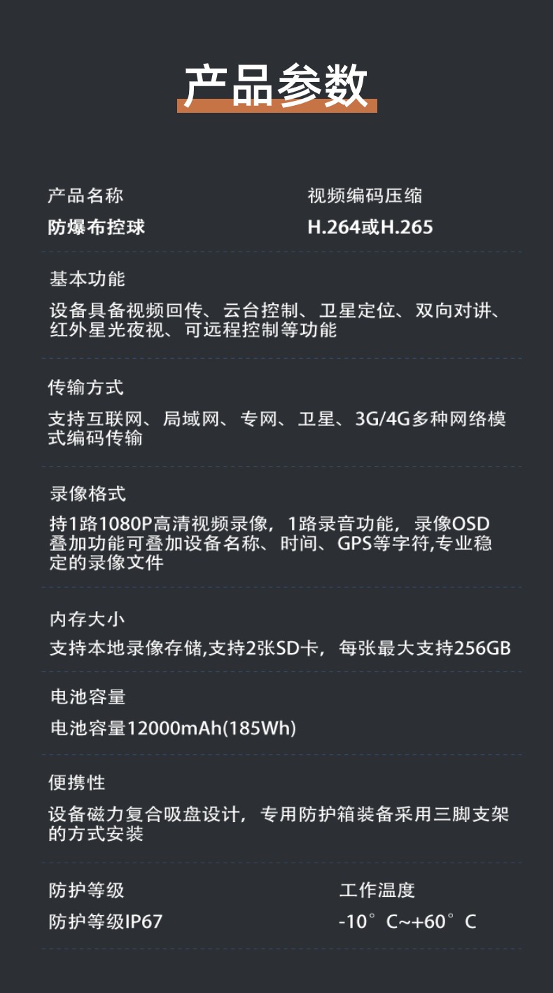 威斯盾防爆监控设备无线便携布控球视频记录仪移动作业用