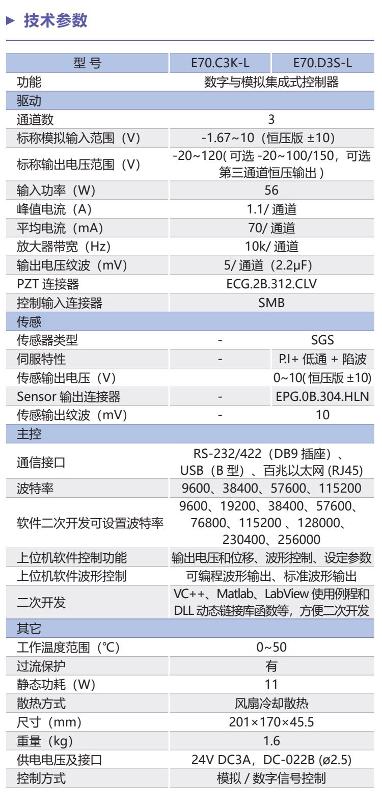 压电控制器 驱动电源E70.D3S/K-L 三通道 串口、USB或网口数字通信 品牌 | 兀 芯明天 COREMORROW | ||