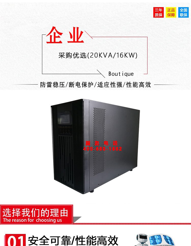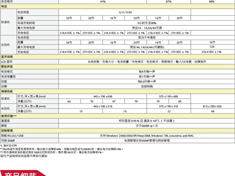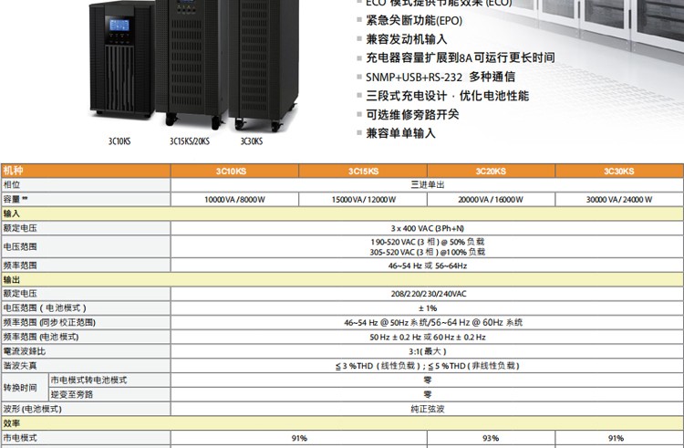UPS不间断电源20KVA/16KW LCD USB长效机不含电池 三进单出 是否支持加工定制 | 否 | ||