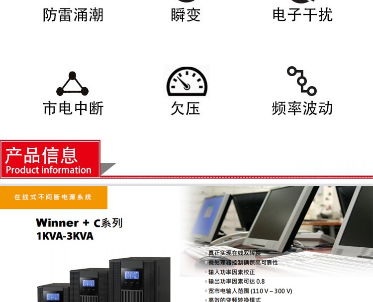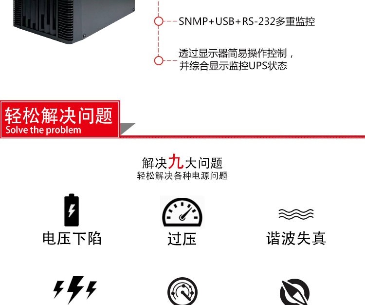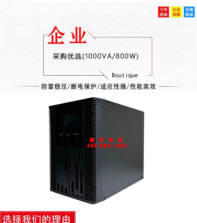UPS不间断电源1000VA/800W MH12V9AH*2 LCD塔式 USB/RS232 是否支持加工定制 | 否 | ||