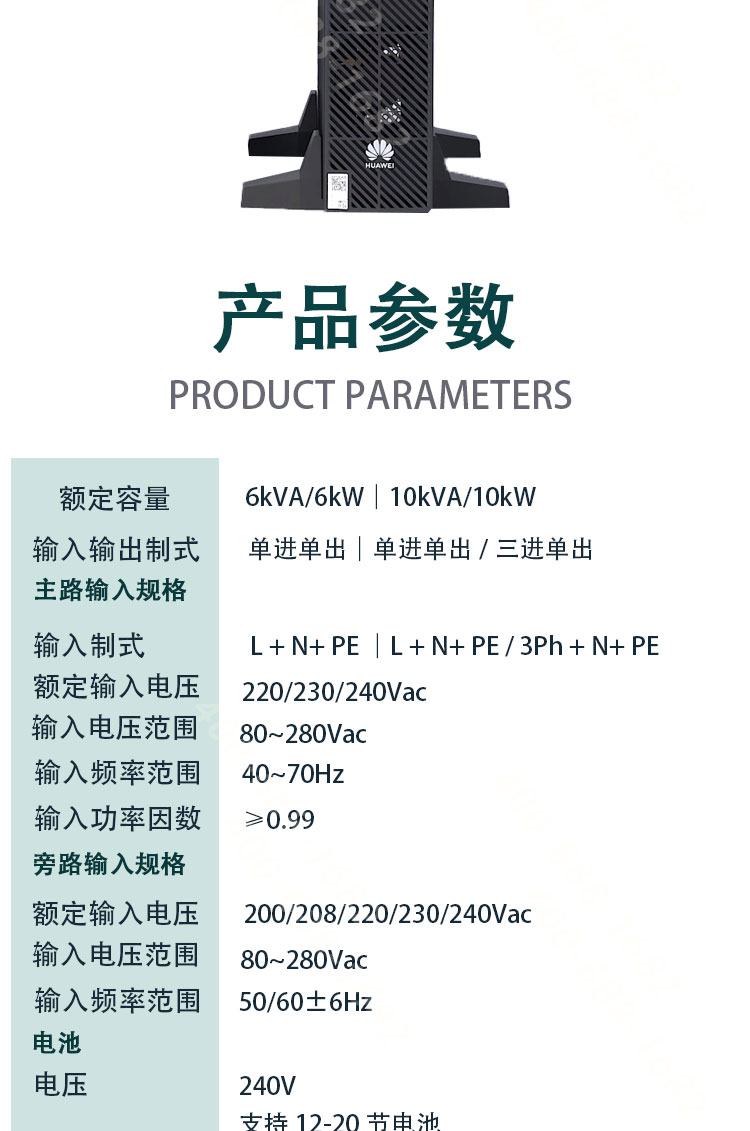 华为UPS2000-H-6/10KRTL-L 适用于电源急用备用机房 是否支持加工定制 | 否 | ||