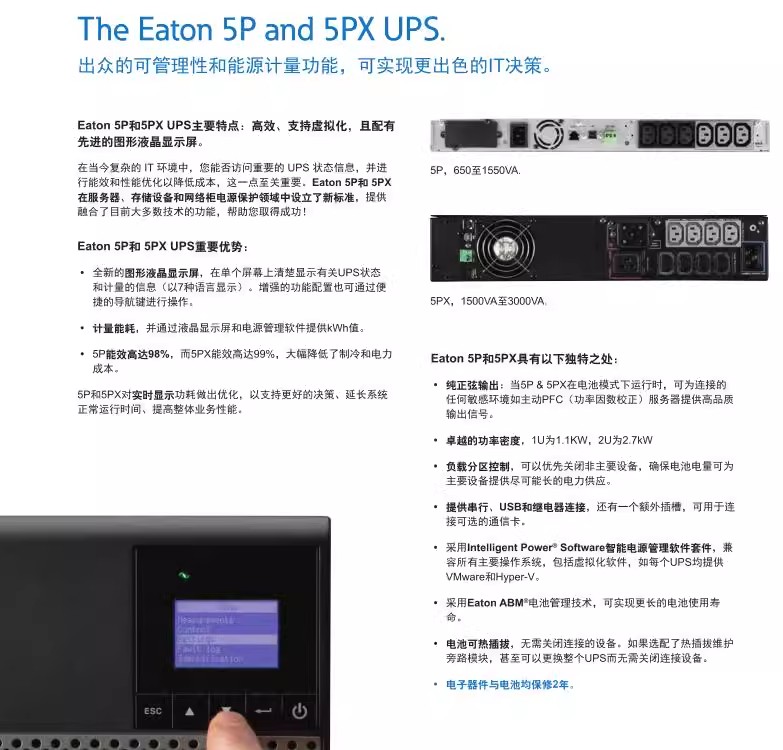 Eaton伊顿UPS不间断电源1550VA/1100W在线互动式停电备用5P1550i 是否支持加工定制 | 否 | ||